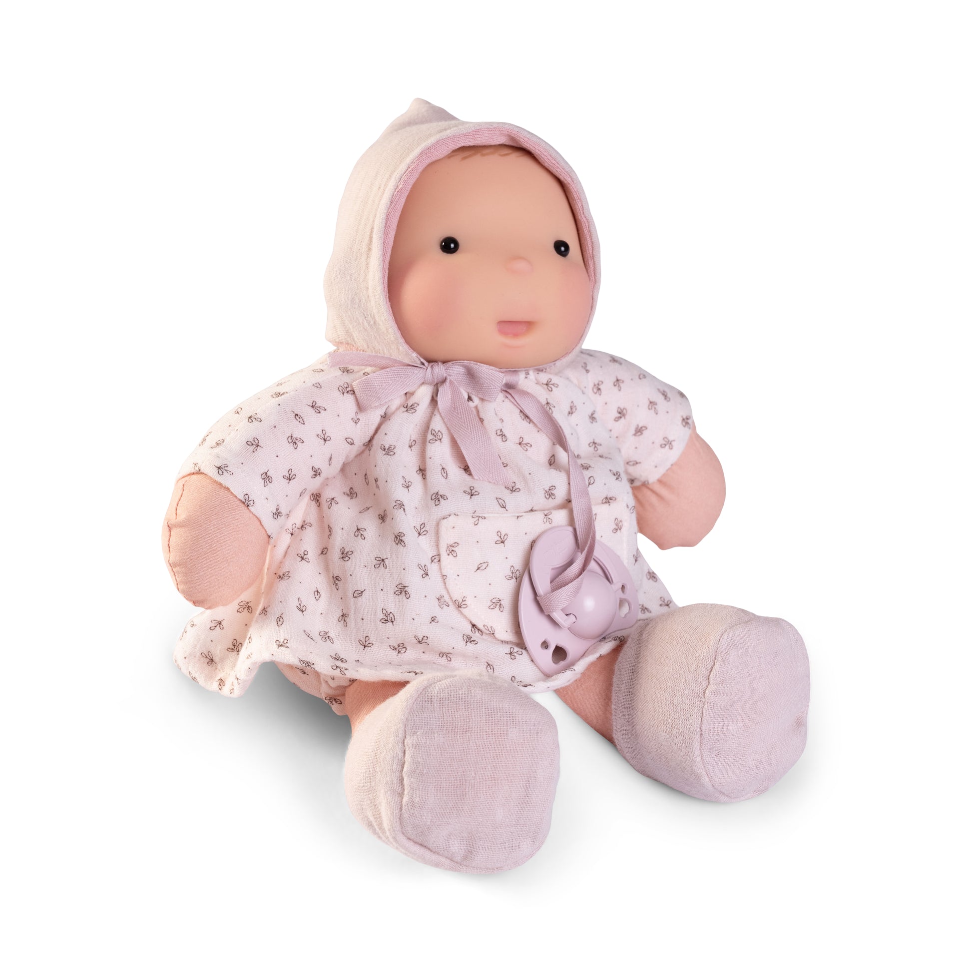 Ariel viene vestida con un hermoso pelele de algodón orgánico y Además, está rellena de suave fibra PET, procedente de botellas de plástico recicladas, un detalle más de nuestro compromiso con el medio ambiente.
