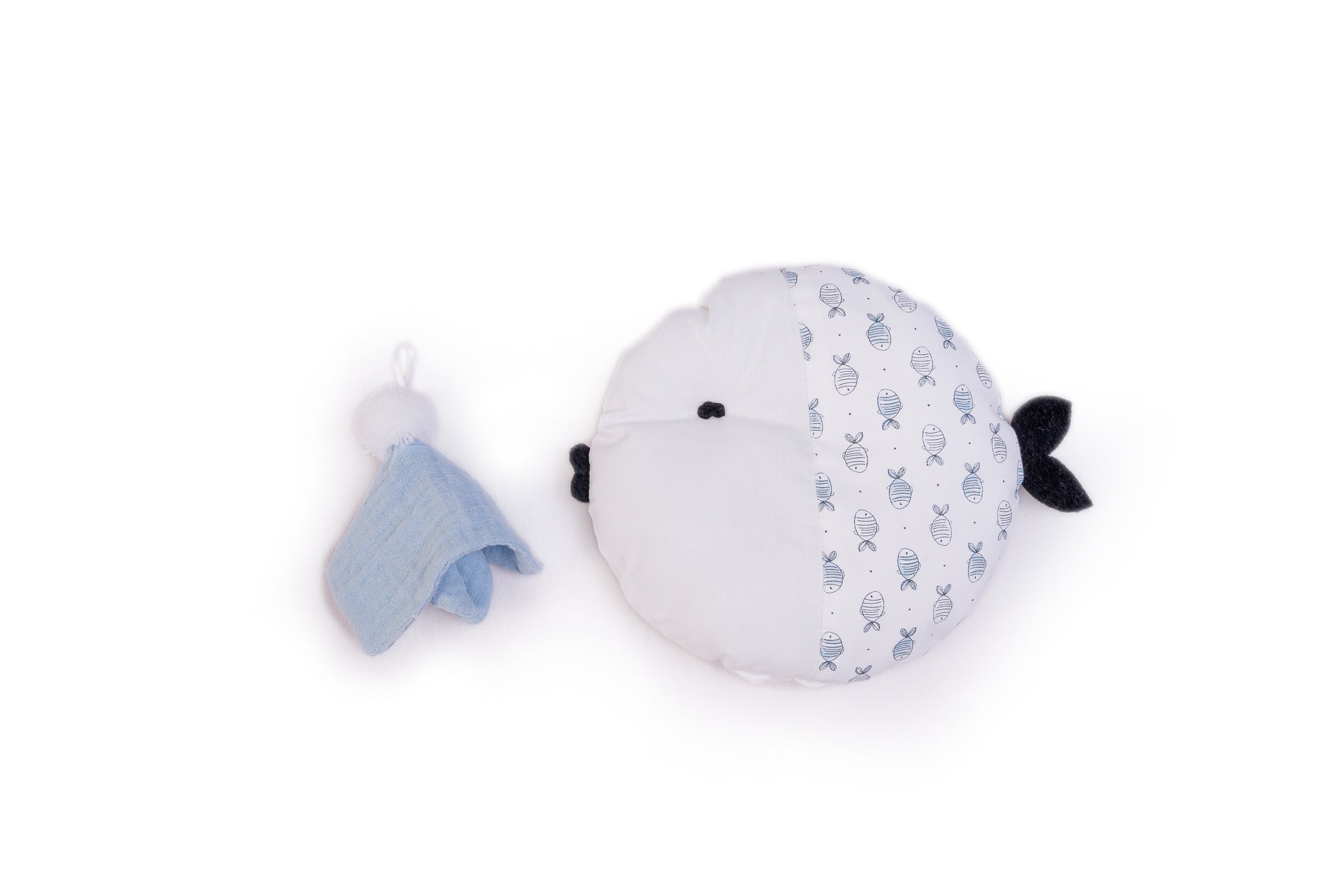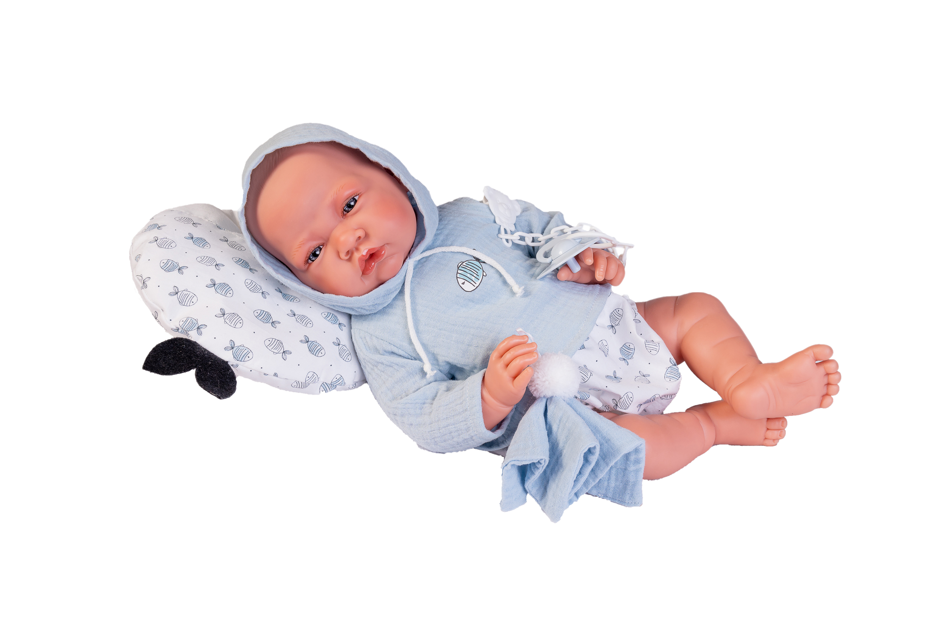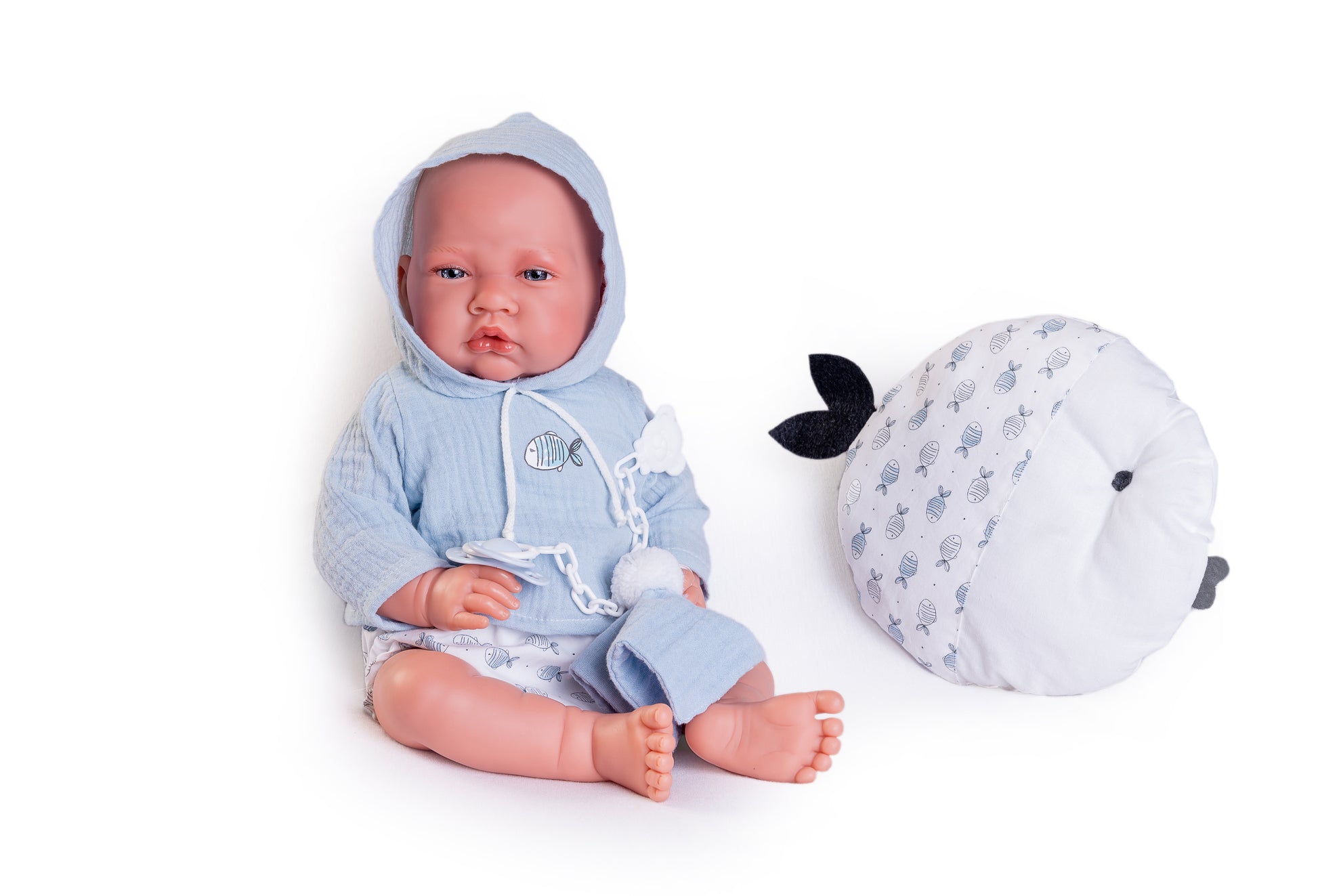 Este adorable bebé viene con un cojín en forma de pez que combina perfectamente con su vestido. Cuando llega la hora de la siesta, se aferra a su trapito de seguridad y se acomoda sobre su cojín para un sueño tranquilo y reparador. Su cuerpo de tela blandito y su cara y extremidades de suave vinilo permiten un abrazo suave y reconfortante, aportando un toque de realismo a cada momento de juego.